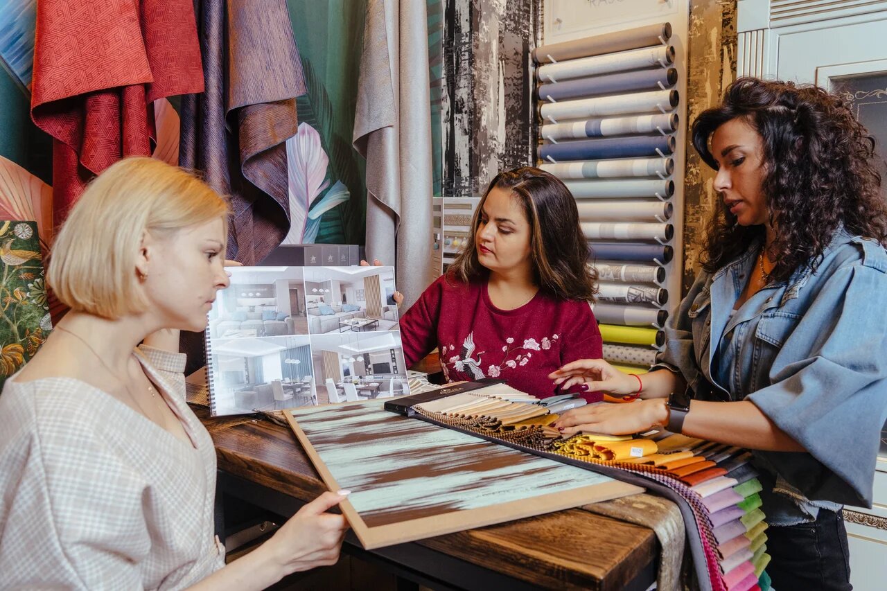 В нашем шоу-руме более 2000 позиций отделочных материалов. Здесь вы можете увидеть керамогранит ручной работы, потрогать фрески и обои, подобрать краску или декоративную штукатурку.