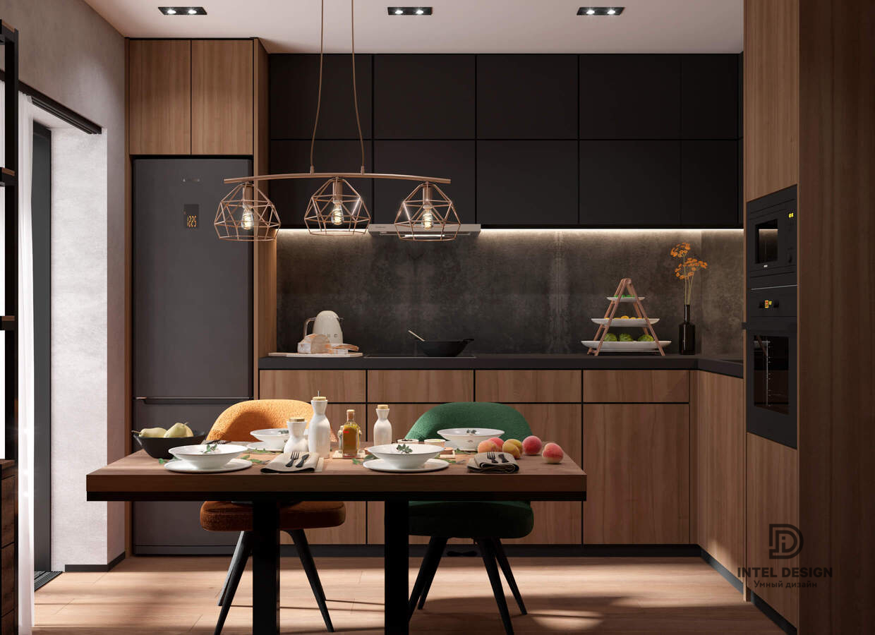Я всё время боялась, что в квартире будет темно, но дизайн, как оказалось предусматривает не только красоту, но и функциональность. Несмотря на то, что много тёмно-графитовых, серых оттенков недостатка освещения дома нет.
